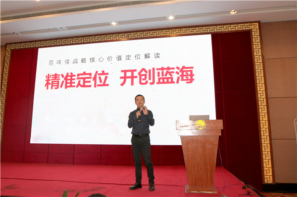 隨后,營銷顧問張老師以“精準(zhǔn)定位,開創(chuàng)藍(lán)!睘轭},對百味佳戰(zhàn)略核心價值進(jìn)行了深刻的定位解讀,他指出,在符合行業(yè)態(tài)勢以及自身優(yōu)勢的基礎(chǔ)上,百味佳要實現(xiàn)“高品質(zhì)鮮香調(diào)味料”的戰(zhàn)略定位,就要落實核心品類打造上,實現(xiàn)以品類托品牌。同時明確新零售形勢下,百味佳將滾動運營發(fā)展,精準(zhǔn)定位、精分市場、產(chǎn)品升級,開創(chuàng)更大更好的藍(lán)海市場。張老師的精彩分享贏得了全場熱烈掌聲。
