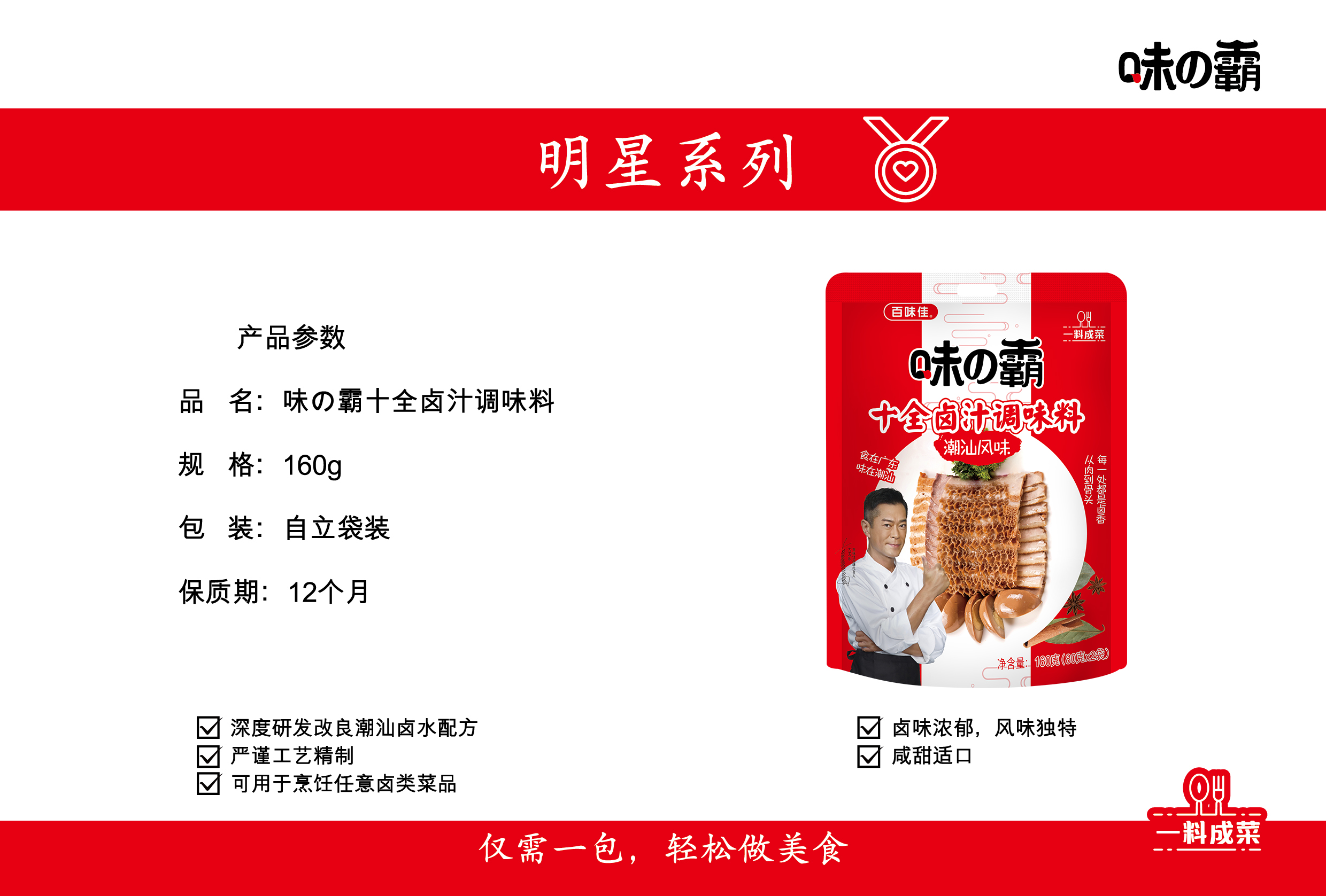味の霸十全鹵汁調(diào)味料 相關產(chǎn)品: 味の霸十全鹵汁調(diào)味料 味の霸橙飲料濃漿810ml2016/07/08 冬陰功醬90g2016/07/08 牛雜醬效90g2016/07/08 味の霸番茄沙司(擠擠裝)2016/07/08 沙拉醬(擠擠裝)2016/07/08
