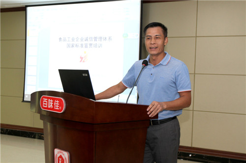 隨后,廣東省食品行業(yè)協(xié)會評估中心錢主任以食品工業(yè)企業(yè)誠信管理體系國家標(biāo)準(zhǔn)宣貫培訓(xùn)為題進(jìn)行宣講培訓(xùn),主要從《食品工業(yè)企業(yè)誠信管理體系》的條款釋義、體系建立、實(shí)施要求及案例分析等方面進(jìn)行深入淺出的講解,旨在推進(jìn)企業(yè)學(xué)員對誠信管理體系的認(rèn)知以及日常工作中誠信體系內(nèi)審的方法與技巧。