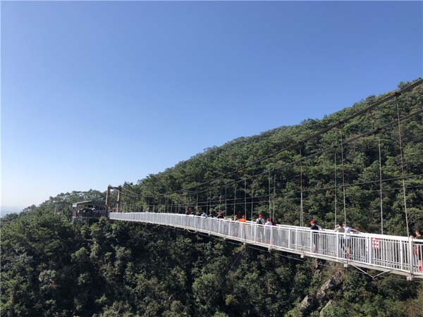 遠(yuǎn)觀,吊橋宛如一條巨龍懸空倚在兩山之中欲騰云沖天?粗旅娴拿軈擦志退銢]有恐高癥,雙腳也會發(fā)軟再也控制不住自己發(fā)出尖叫聲。