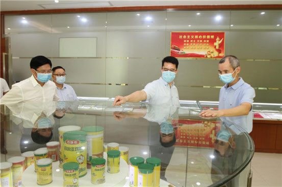 7月31日,羅晃浩副市長(zhǎng)、梁紹光副秘書長(zhǎng)一行領(lǐng)導(dǎo)蒞臨廣東百味佳味業(yè)科技股份有限公司(以下簡(jiǎn)稱“百味佳”)督導(dǎo)考察,百味佳董事長(zhǎng)兼總經(jīng)理鐘沛江、副董事長(zhǎng)兼副總經(jīng)理潘佛欽等公司管理層領(lǐng)導(dǎo)熱情接待。